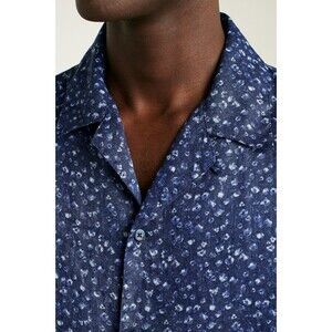 Bonobos Linen Riviera Cabana Men's Shirt Buttondown Print Short Sleeve M 283382