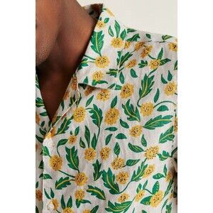 Guaranteed 100% Authentic & Never Before Worn Description: * Open camp collar * Short Sleeve * Floral Print * Straight hem * Side vents Measurements/item Details * Size - Large * Chest - 23.5"across (Laying Flat) * Shoulder - 18.5"across (Laying Flat) * Length - 29"approx * Color - Yellow Floral * Fabric - 100 % linen Please note: This Item Is New Without Tags.