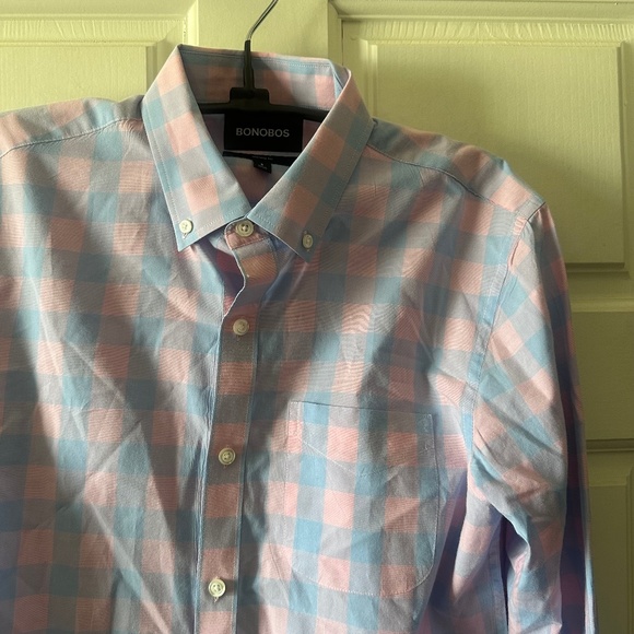 Bonobos - Long Sleeve Button Down - Pink/Blue Check - Size Small