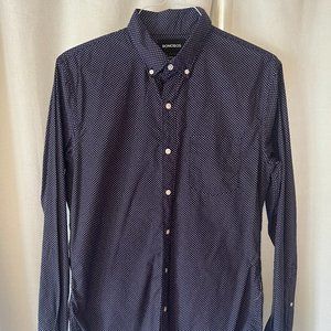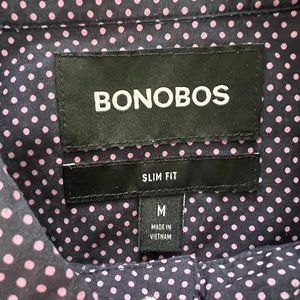 Midnight blue w/ pink dots l/s button down shirt from Bonobos, style: Stretch Everyday shirt . Size Men's Large, Slim fit. Excellent condition, worn once and decided didn't like the color. Button down collar, stretch fabric, Casual or office wear.