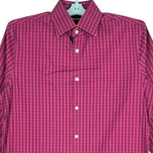 Bonobos Men Stretch Standard Fit Button-Down Pink/Grey Plaid Shirt Size 15.5 -34