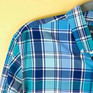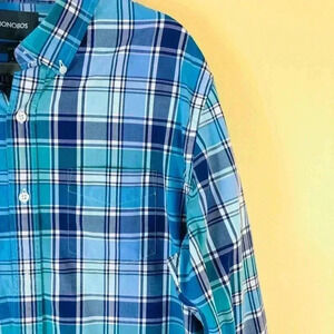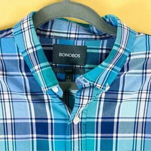 Bonobos Mens Blue Plaid Button Collar Button Down 100% Cotton Slim Shirt Size L