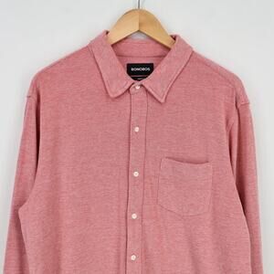 Bonobos Men's Cotton Terry Knit Standard Fit Long Sleeve Button Down Red Large