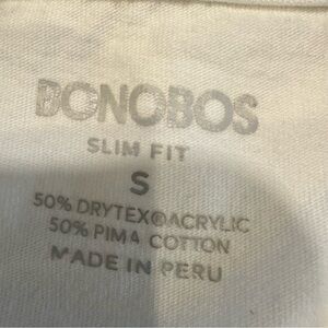 Excellent condition. Men’s Bonobo’s Henley performance tee shirt. White, short sleeves, 3 button front, pullover, breathable, moisture wicking, 50% Drytec & 50% Pima cotton, stretch. Size small. See photos for measurements MSRP $68