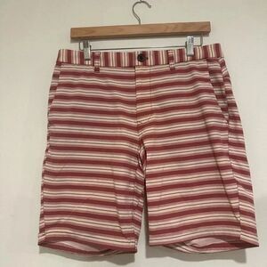 Bonobos Men’s Shorts Red Striped Chino Flat Front Size 32 Coast To Coasters