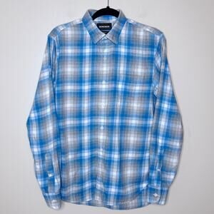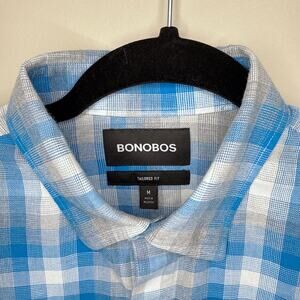 Bonobos Men's Tailored Fit Blue Gray White Plaid Medium Button Front Shirt