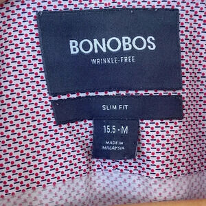 Bonobos Mens Wrinkle Free Slim Fit Shirt Size 15.5 Medium Red Button Down.
