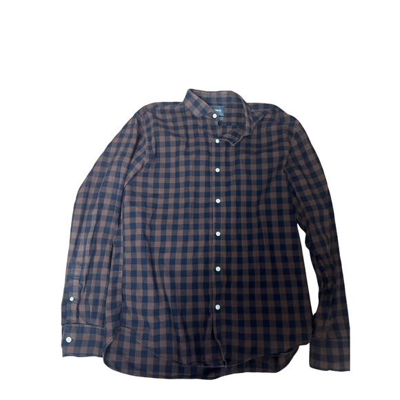 Bonobos Mens XL Slim Fit Brown & Navy Blue Checkered Long Sleeve Shirt