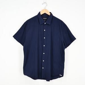 Stylish navy button down shirt. Short sleeves. Perfect for casual wear.