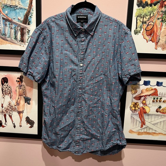 Excellent condition Bonobos patterned button down shirt. Super comfortable fabric with a fun floral-esque pattern on it.
