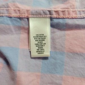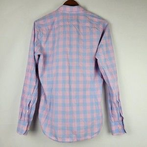 Bonobos Shirt Mens Medium Tailored Fit Pink Blue Plaid Long Washed Button Down Pit to Pit: 20" Length: 29" Very Good Pre-Owned Condition No rips, holes tears or stains