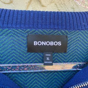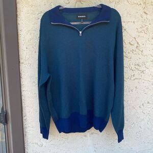 Bonobos Size XL Green Blue Collared Quarter Zip Sweater 100% fine merino wool