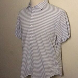 This Bonobos Slim Fit Blue and White Striped Short Sleeve Button-Down Shirt is in excellent preowned condition. This t-shirt is crafted from cotton and features a blue and white striped pattern design. It is a marked size XL (please know your size in Bonobos). This shirt has been previously worn and laundered, however, has been kept in excellent condition with no signs of excessive wear nor damage including no rips, tears, stains, holes, nor other signs of damage. Please refer to the provided photographs and description to verify the exact condition of this shirt.