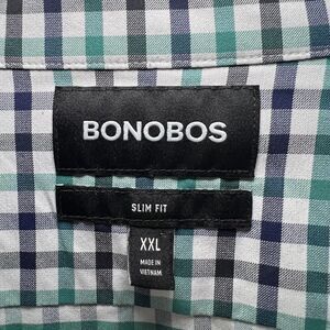 Bonobos Slim Fit Button Up Shirt Mens Size XXL 2XL Green Blue Gingham Check EUC