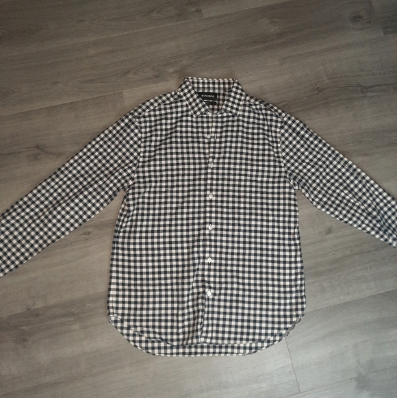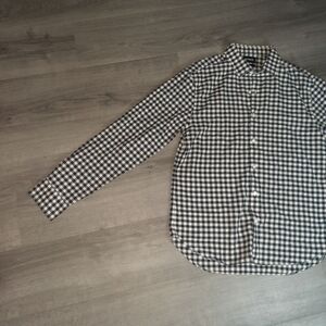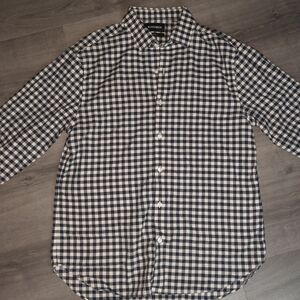 Bonobos slim fit navy blue and white checkered print long sleeve button up. Size L. 100% cotton. Great pre-owned condition.