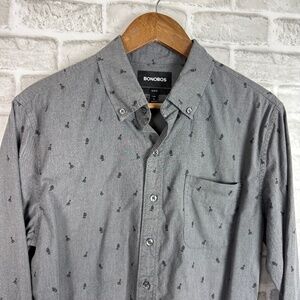Bonobos Slim Fit Dark Gray Chess Pieces AOP Casual Button Up Shirt Mens MEDIUM