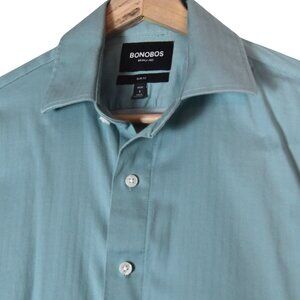 Bonobos Slim Fit Dress Shirt Short S Wrinkle-Free Sage Minimalist Businesscore