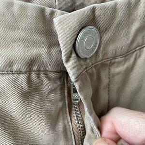 Mens Bonobos Medium Tan Khaki Slim Straight Chino Pants with hook button and zip closure. Contrast lining on the back welt pockets. 100% cotton. Laying flat measures 15.5 inches straight across the waist with a 10 inch rise and a 30 inch inseam. The tag size is 32 x 32, however, these definitely run smaller than the other bonobos pants I have listed even though they’re marked the same size so please rely on measurements to ensure the proper fit. There is one small light spot on the front thigh. See photos.