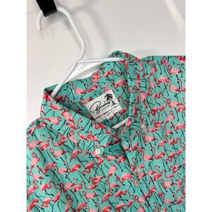 Bonobos Standard Fit Flamingo Print Hawaiian Button-Down Shirt Pink Blue Large