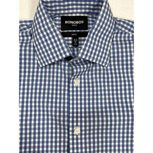 Bonobos Stretch Slim Fit Blue Plaid 15.5 34 Long Sleeve Shirt Button Up