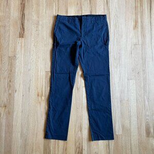Barely worn stretch-washed chinos, my husband just decided they were too short on him - comfy, great for both business and casual wear. Waist 29, length 30. Bright navy blue color.
