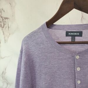 Bonobos Sweater Mens Large Purple Linen Henley Button Lightweight Lilac Golf