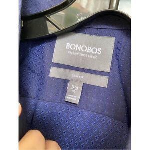 Bonobos Swiss Co. Slim Fit Dark Blue Dot Button-Up Shirt, Men's Size 16.5/ 34