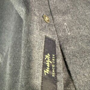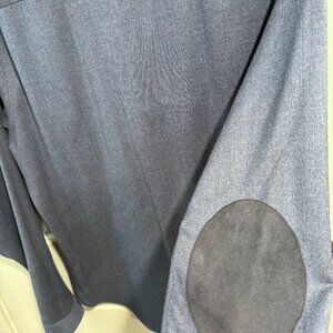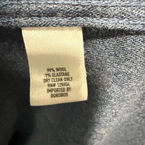 This premium Bonobos men's slim-fit shirt, size medium, is crafted from a luxurious 99% wool blend fabric from the Italian mill Fratelli. Presented in a versatile heathered blue, it features sophisticated details like tonal elbow patches and a single chest pocket for an elevated, academic-inspired look.