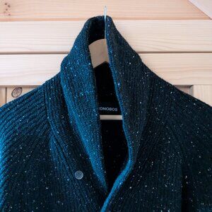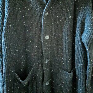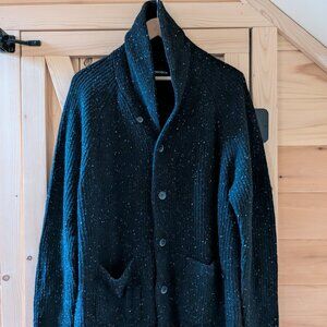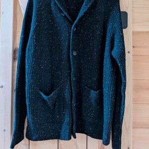 Bonobos Wool Thick Knit Button Cardigan Classic Black Men's Large Collar Chunky