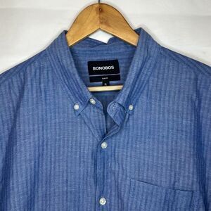 Bonobos Mens Blue Button Down Chambray Blue Slim Fit Long Sleeve Shirt size XL Striped