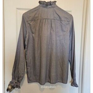 Bonpoint Button Up Bree Blouse Long-Sleeve Gingham Navy and White Women's Medium