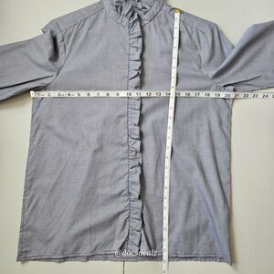 The Bonpoint Button Up Bree Blouse is a classic fit long-sleeve blouse in a gingham navy and white pattern. This button-up top features ruffle accents and is designed for women in size medium. Perfect for a polished and chic look, this blouse is ideal for adding a touch of elegance to any outfit.