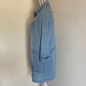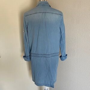 Charming dress with floral pattern. Features light blue fabric and colorful flowers. Ideal for a fresh look.
