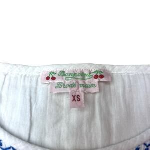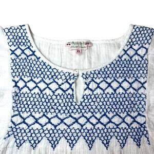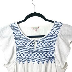 Bonpoint Embroidered Smocked Flutter Sleeve Cotton Top Blouse White Blue Sz XS
