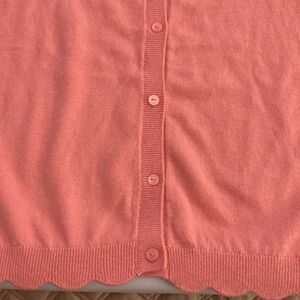 Bonpoint Girls Cardigan with Scalloped Neck and Hem. Pink Cotton/Wool Blend.