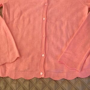 Bonpoint Girls Pink Cardigan with Scalloped Hem and Cuff. Cotton Blend. Size 10Y