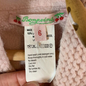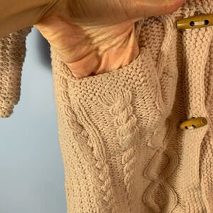 Bonpoint merino wool hooded sweater jacket coat cable knit baby pink toggle