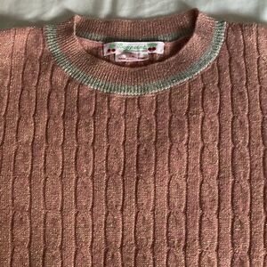 Bonpoint NWOT Girls Cable Knit Pullover Sweater with Gold Metallic Thread.