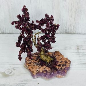Very cool- natural, made from rocks and stones of the earth. The wire trunk gives it a springy feel letting the branches bounce and move when the piece is lifted. Good preowned condition. Another tree listed separately. BAse is definitely more purple like amethyst, "leaves" a bit of a darker shade...almost reddish. Bin14