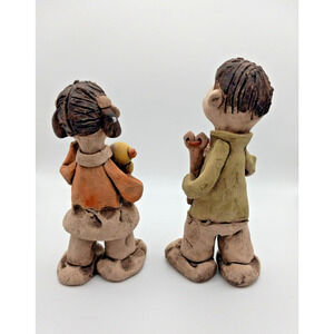 Bonsan Japanese Earthenware Girl & Boy Unglazed Pottery- Vintage Handmade