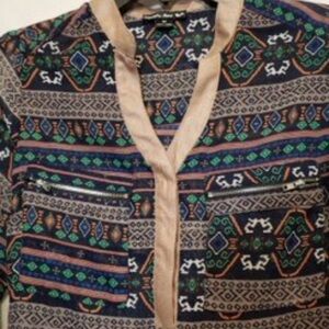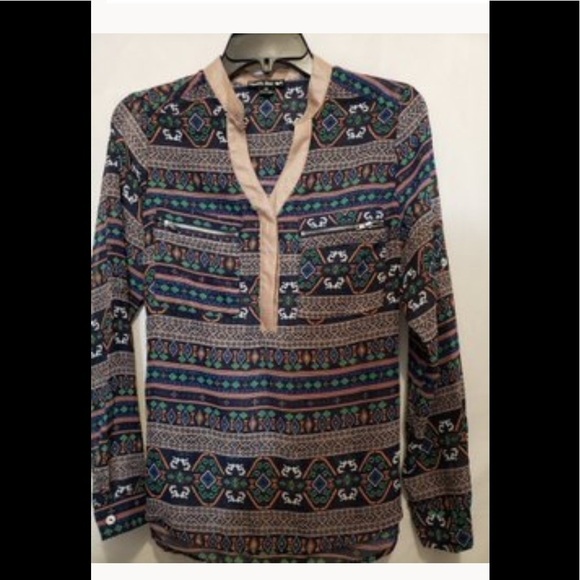 Bonus Jewelry included ‼️ Women long sleeve unique pattern top with tie. Gorgeous vibrant blouse