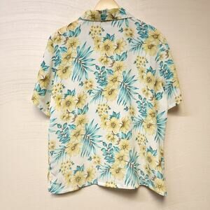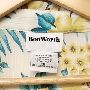 Bonworth Floral Shirt Size Medium P Hawaiian Button Down Silky Polyester Travel