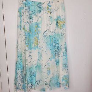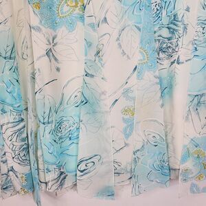 Bonworth Midi Skirt Fairy Pleated Flowy Asymmetrical Muted Blue Floral WOmens M