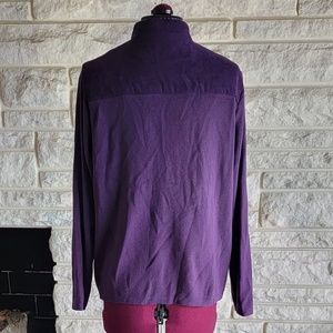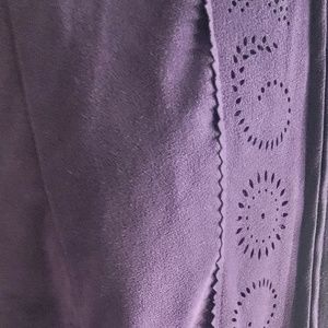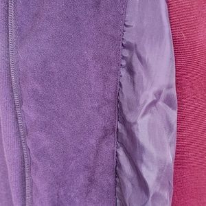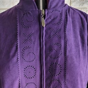 Bonworth Suede-Look Purple Leisure Jacket featuring stamped paisley and circle details, full front zip closure and lining. Back is half knit, half suede-feel.