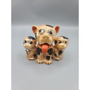 Bonzo Dog Salt And Pepper Condiment Set Lusterware. Has paint loss. Looks to have been colored to repair. See photos.