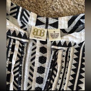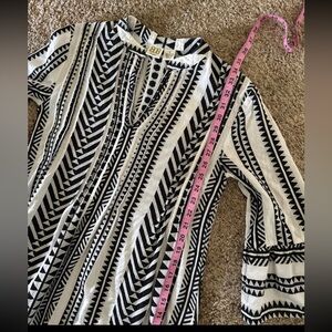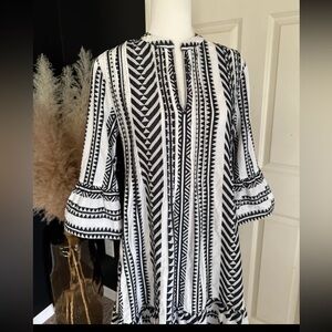 Boo Gemes Black/White Bell Sleeve Aztec Print Mini Dress size Small