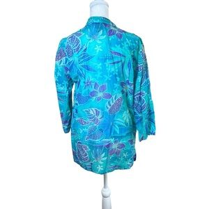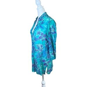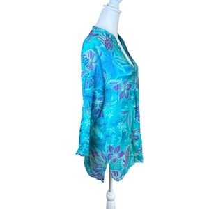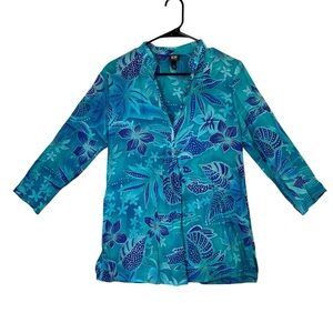 Boo Gemes Cotton Silk Tropical Flowers Blue Tunic Top Popover Women’s Size Small