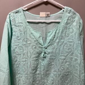 Boo Gemes women’s blue tunic dress 100% cotton size XL Light Weight Resortwear