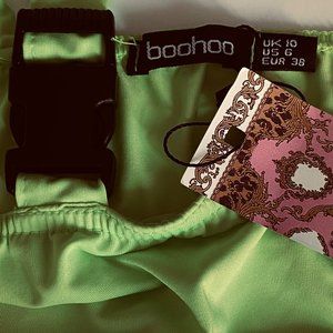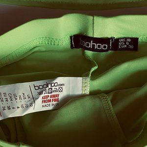 Boo Hoo 2 Piece Shorts Crop Top Womens Sz 6 Small Lime Green Buckle Detail New