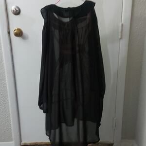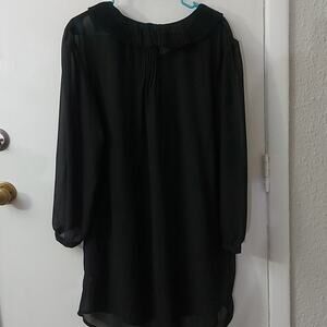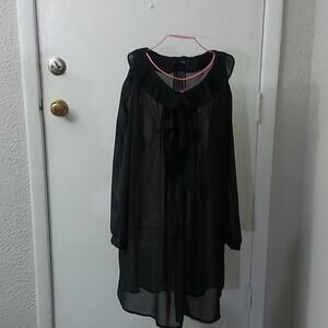 BooHoo Black Bow Sheer Dress Poet Shirt 12 Classic Coquette Girl Minimalist